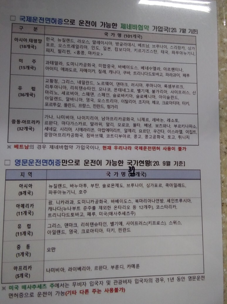 영문 운전면허증을 사용할 수 있는 나라들(영문운전면허증 사용가능 국가)