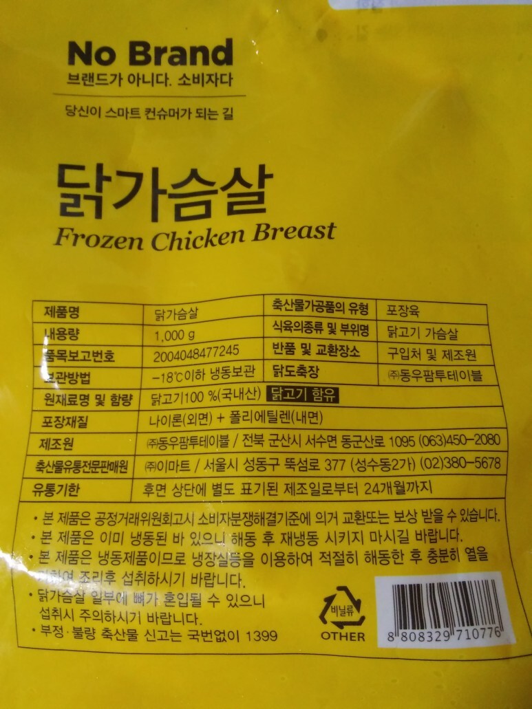 분쇄육이 아니라 통 닭가슴살 그대로이니 뭐 딱히 품질을 의심할 것이 없다.