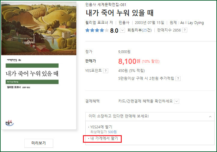 1) 서점 사이트에서 그 책을 검색해서 "내 가게에서 팔기"를 클릭한다.