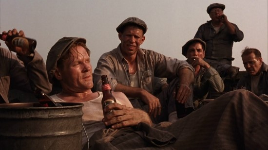레드 : On the second-to-last day of the job, the convict crew wound up sitting in a row, drinking icy-cold beer.