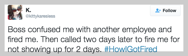 사장은 나를 다른 직원과 헷갈렸고 나를 해고했다.