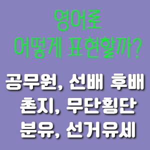 | [생활영어] 세배,충동구매,들러리,음식덮개,자석잠금장치,가시,어린이용의자,시민권 자동부여,발목 운동화 영어로 (0) | 2023.09.15 |