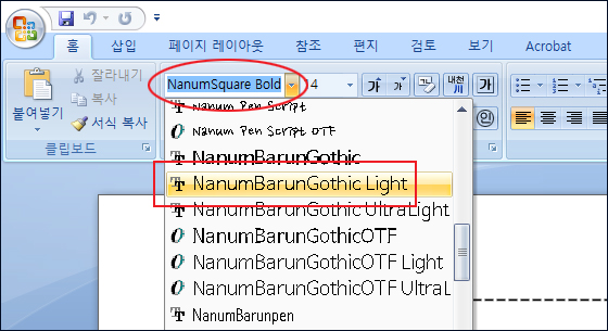 이거야 뭐 당연한 거고, 표시되는 언어가 다를 뿐 양쪽 컴퓨터가 그 폰트를 갖고 있다고 당연히 인식할 줄 알았는데, 실제로는 그렇지 않은 거였다. 아...황당. 그래서 각 오피스 프로그램 내에서 모든 설정을 다 뒤져봤는데도 폰트의 표시언어에 대한 메뉴를 찾을 수가 없었다.
