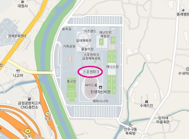 이 스포원파크 자체의 입장료라든가 주차요금 같은 것은 없다. 무료.