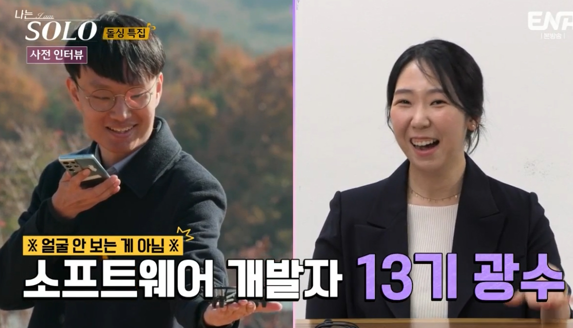 ◆ 이상형 : 13기 드론 광수(소프트웨어 개발자), 20기 광수(방탈출 제작자) 같은 뇌섹남 스타일 / 자기 직업에 자부심이 있거나 취미에 집중하는 덕후 기질이 있는 분