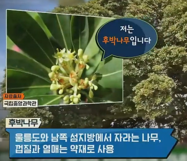 후박나무는 울릉도와 남쪽 섬지방에서 자라는 나무로 껍질과 열매를 약재로 사용함.
