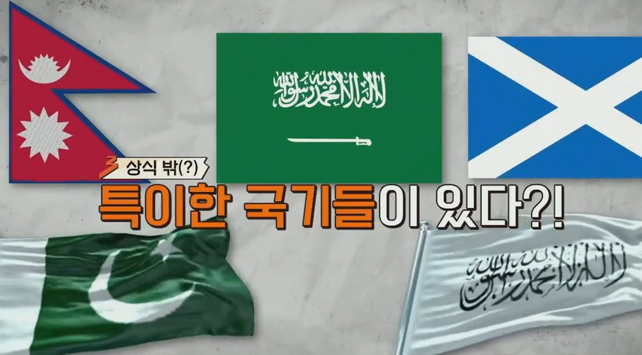 대부분의 국기는 직사각형인데, 스위스 국기는 정사각형, 네팔 국기는 두개의 삼각형이 붙은 모양.