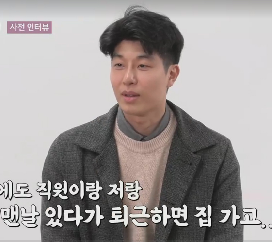 ● 아직 싱글인 이유 : 직업이 회사원이 아니다 보니까 이성을 만날 수 있는 기회 자체가 아예 없음.