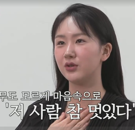● 이상형 : 청순하고 깨끗한 스타일. 덩치가 큰 사람. 턱이 남자다운 사람. 쌍커풀 없는 사람, 코가 예쁜 사람, 키가 큰 사람 등 나는솔로 신청서에 이상형을 엄청 많이 써서 제출.