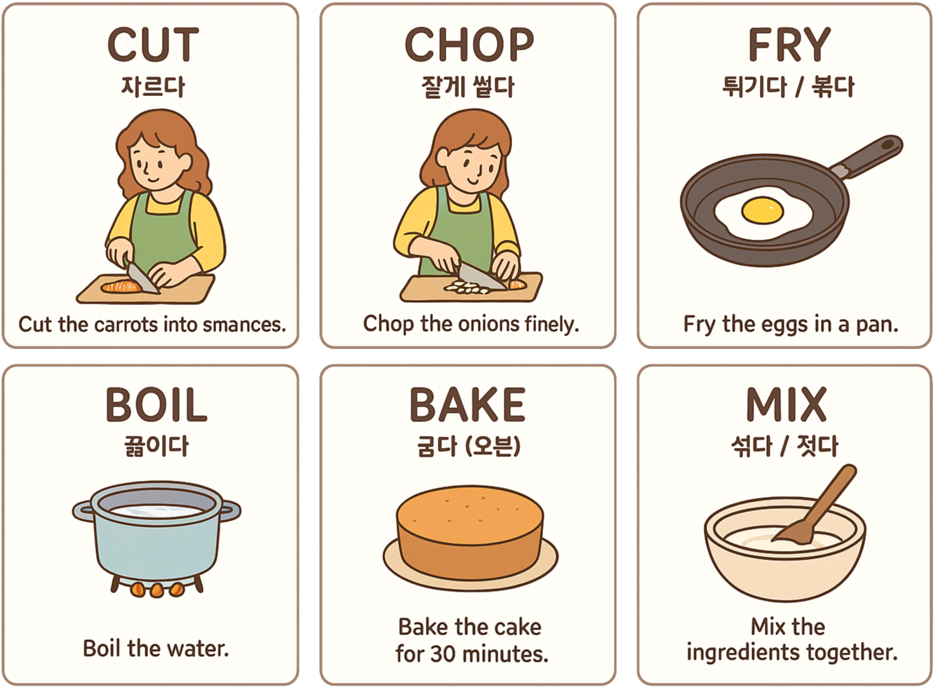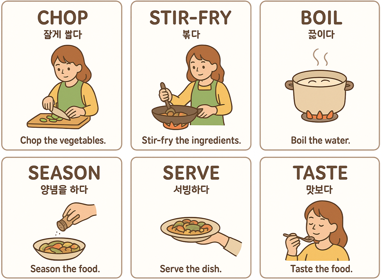 요리 과정을 설명하기 위한 기본 동사들, 예문