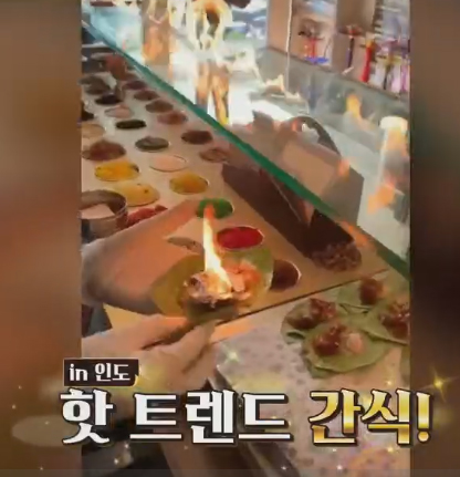 인도 뉴델리에서 인기있는 간식, 작은 불쇼를 연상시키는 핫한 트렌드의 인도 간식, 일명 "파이어 빤 Fire Paan".