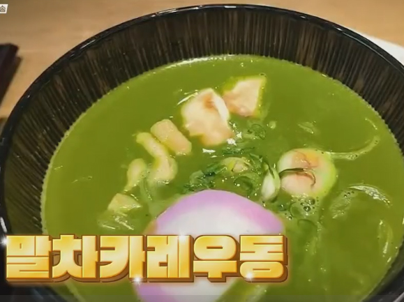 일본 교토 우지마을의 <O식당>에는 말차를 이용한 다양한 메뉴가 있는데, 말차 파르페, 말차 푸딩 아포카토, 말차 당고 등. 이 식당의 말차 메뉴 중 가장 충격적인 메뉴가 바로 말차 카레 우동.