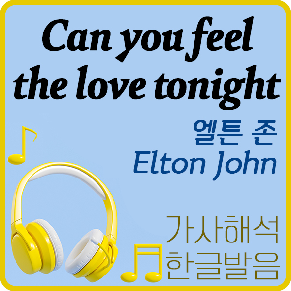 Elton John(엘튼존) 대표곡 <Can you feel the love tonight 캔 유 필 더 러브 투나잇>, 영화 <라이온 킹> 주제곡, 영어 가사 원문, 가사해석, 한글 뜻, 한글발음, 공식 뮤직비디오(뮤비)