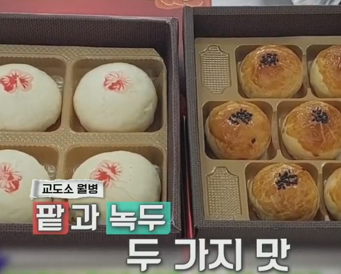 팥, 녹두 두가지 맛. 달걀 노른자를 곁들인 클래식 조합. 이 교도소 월병이 핫해진 이유는, 5성급 호텔 셰프 출신이 수감된 계기로 그의 제빵 노하우가 월병 맛을 업그레이드 시켰다고.