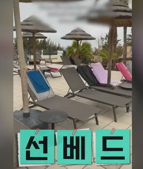 스페인 S호텔 선베드, 유독 이 호텔에서만 이런 오픈런이? 이 호텔의 수영장 내에 선베드 개수가 생각보다 많은데도 사람들이 뛰는 이유는 흔한 선베드 자리가 아니라 선탠하기 좋은 명당 자리를 선점하기 위한 것.