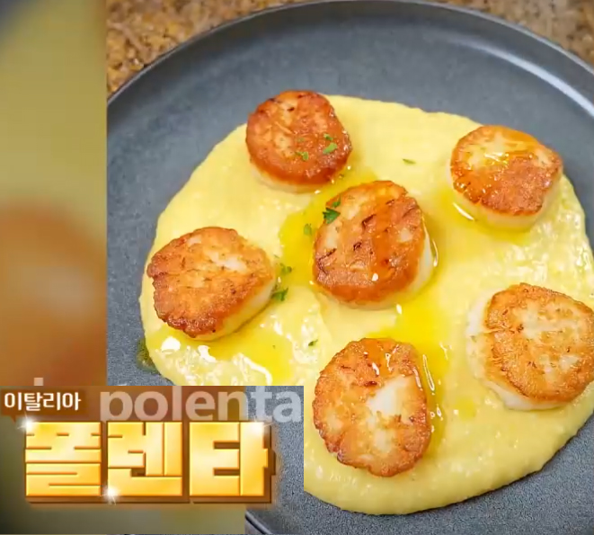 폴렌타 레시피? 옥수수 가루와 물을 섞어 중불에 오래 끓이는 방식. 평범한 비주얼이지만 어떤 음식과도 완벽한 찰떡 궁합을 이루는 이탈리아 대표 음식.
