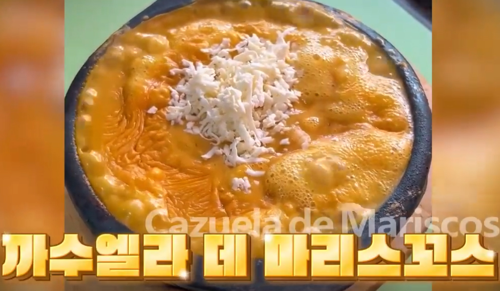 까수엘라 데 마리스꼬스 레시피 : 양파, 마늘, 피망, 토마토 등 다양한 채소를 볶아 향을 낸 팬에 새우, 조개, 홍합, 오징어, 각종 생선 등 카리브해의 온갖 신선한 해산물을 아낌없이 투입해 볶아주고 여기에 바다향 가득한 해산물 육수와 고소함 끝판왕인 코코넛 밀크 투하하면 감칠맛 폭발하는 진하고 싶은 국물 완성!