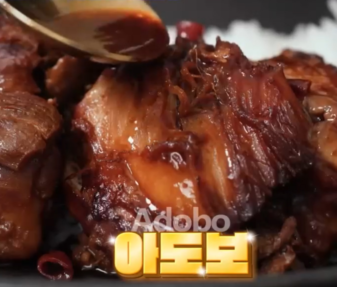 가장 맛있는 필리핀 수프 1위로 선정, 여행객이 뽑은 필리핀 베스트 음식 1위로 선정된 필리핀 밥도둑 요리, 아시아 대표 밥도둑으로 자랑하는 요리, 필리핀의 모든 가정이 즐기는 대표 음식 아도보(Adobo).